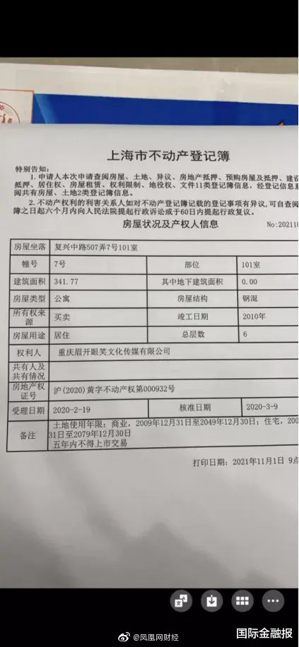 在2021年11月1日打印的上海市不動(dòng)產(chǎn)登記簿中,國(guó)際金融報(bào)記者關(guān)注到該房屋的權(quán)利人為重慶眉開(kāi)眼笑文化傳媒有限公司,正是謝娜名下企業(yè)。目前,帶看中介H已準(zhǔn)備起訴房東上海思和資產(chǎn)經(jīng)營(yíng)管理中心和買家謝娜、張杰以及謝娜的母親。北京觀邦律師事務(wù)所郎克宇律師告訴記者,若證據(jù)充足,勝訴概率不低。對(duì)于最終的起訴勝率,郎克宇直言其所在事務(wù)所曾有不少此類案件中介勝訴,關(guān)鍵要看證據(jù)舉證能否對(duì)應(yīng)上。
