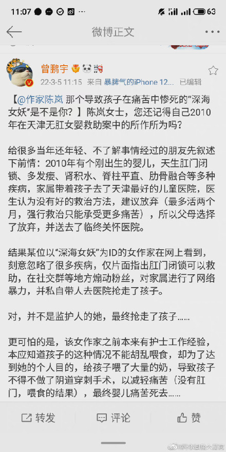 陳嵐前些年為了流量害死過一個(gè)無肛女嬰