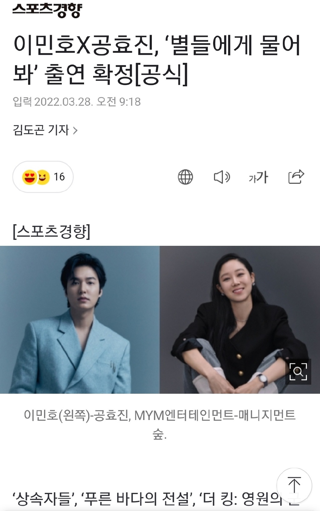 孔曉振將飾演韓裔美籍宇航員伊夫·金。這是孔曉振和徐作家繼《Pasta》和《嫉妒的化身》之后第三次合作。《問問星星吧》將從下個月開始拍攝,計(jì)劃明年在國內(nèi)電視臺和世界在線視頻服務(wù)(OTT)上播出。