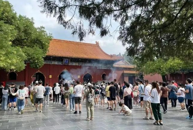 不僅雍和宮是這樣,北京其他的寺廟,也有類似的場(chǎng)景,被年輕人占領(lǐng)。